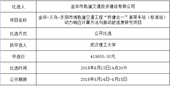 金華-義烏-東陽(yáng)市域軌道交通工程軌道、公交乘車碼二碼融合清分系統(tǒng)集成項(xiàng)目的中標(biāo)候選人公示
