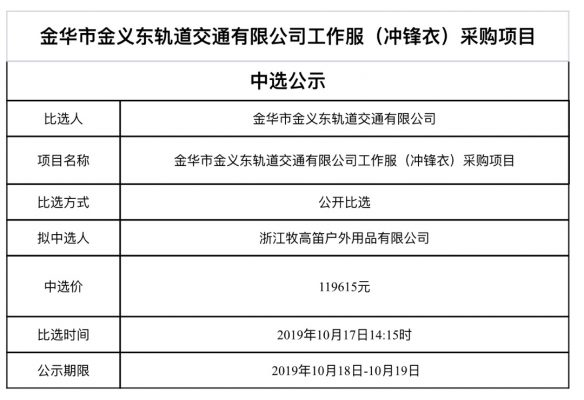 金華市軌道交通控股集團物業(yè)管理服務(wù)有限公司2025-2026年度勞務(wù)派遣人員工作服采購項目中標(biāo)候選人公示