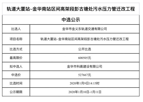 金華-義烏-東陽市域軌道交通工程軌道、公交乘車碼二碼融合清分系統(tǒng)集成項目的中標(biāo)候選人公示