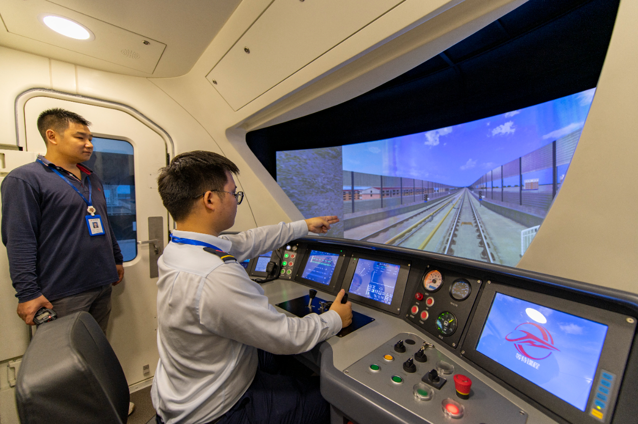 6月11日,在浙江省金華市金義東市域軌道交通工程塘雅車輛段,青年職工選手在參加軌道交通模擬駕駛項(xiàng)目技能比武。