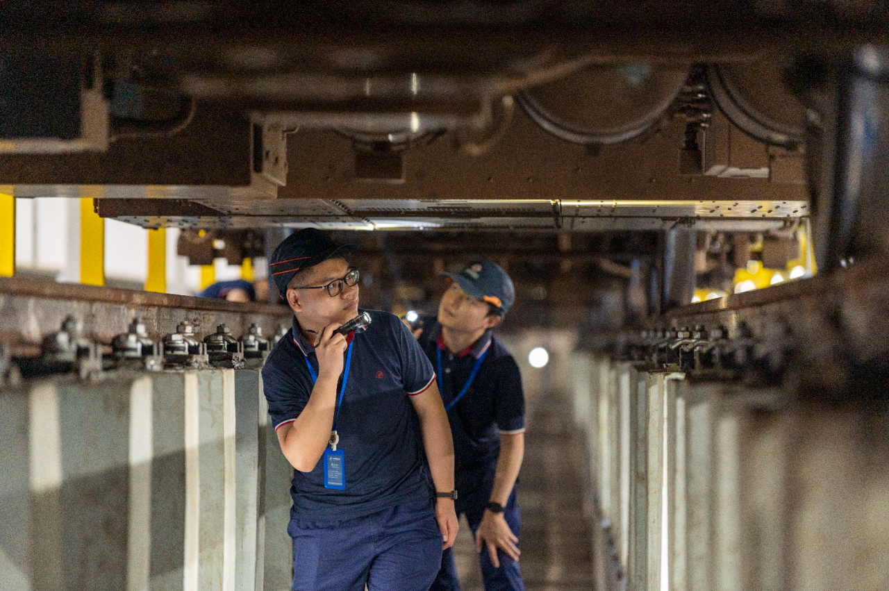 6月11日,在浙江省金華市金義東市域軌道交通工程塘雅車輛段,青年職工選手在參加軌道交通車廂安檢項(xiàng)目技能比武。當(dāng)日,浙江省金華市舉行第三屆軌道交通青年職工技能比武大賽。從全市1000多名專業(yè)人員中選撥出來的282名青年職工選手參加應(yīng)急處置、服務(wù)禮儀、手動駕駛、行車故障處置等13個項(xiàng)目的角逐,全面提升城市軌道交通從業(yè)人員的業(yè)務(wù)技能水平,推動技能人才隊伍高質(zhì)量發(fā)展。