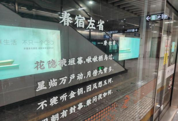 站臺(tái)門上,古詩詞與廉潔標(biāo)語精心交錯(cuò),詩意與廉語交融。